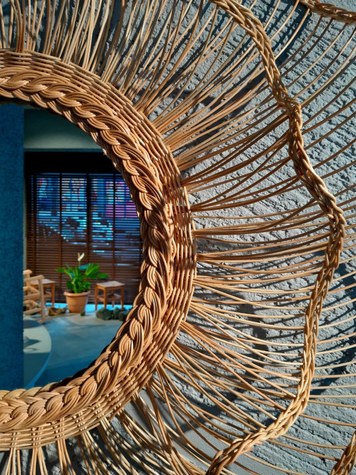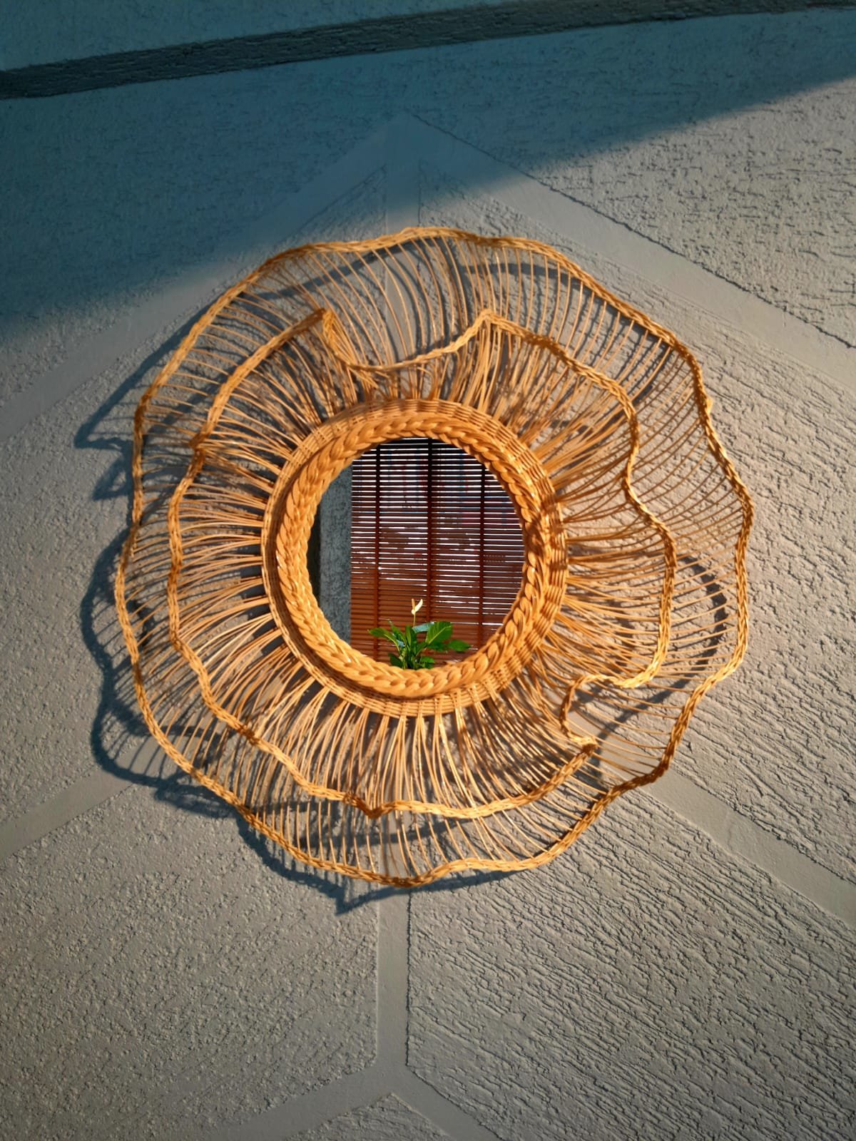 Duvarlarınızda doğal bir güneş doğsun; el işçiliği bambu duvar aynası.