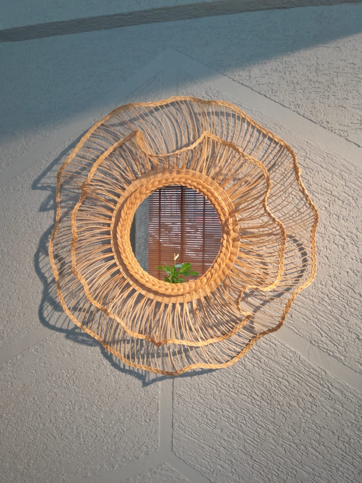 Duvar dekorasyonunun en trend parçalarından biri. Güneş ışınlarını andıran bambu örgü detayları, aynanın işlevselliğini bir sanat eserine dönüştürüyor. Bambu malzemenin hafifliği sayesinde duvara kolayca asılır ve sarkma yapmaz. Antre veya salon duvarlarınızda doğal bir odak noktası oluşturur.